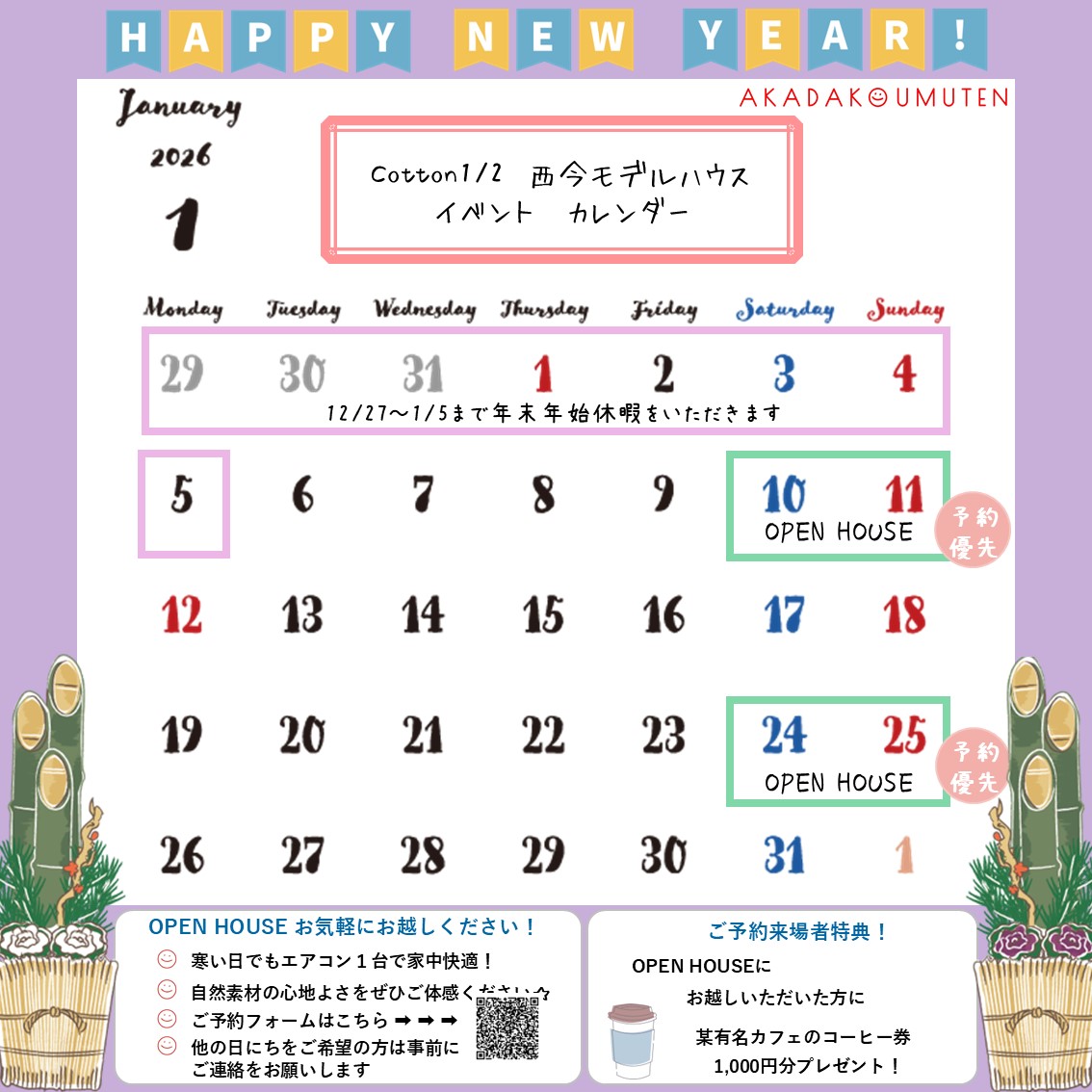 1月OPEN HOUSEのお知らせ