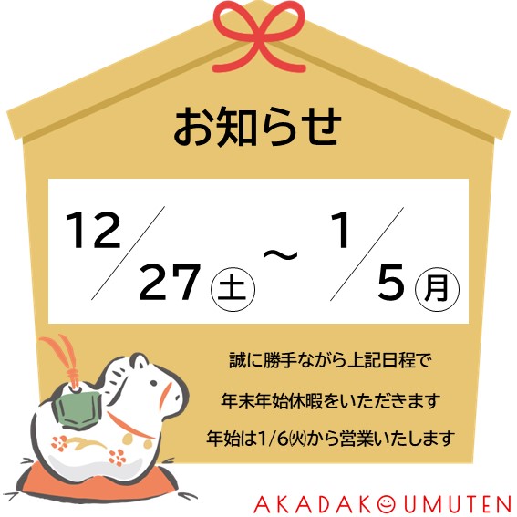 年末年始休業のお知らせ